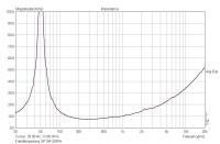 da dieses Chassis wahrscheinlich in meinem nächsten Projekt mit vorkommt hier eine kalibrierte Freiluftimpedanzmessung von gerade eben. Weicht ein klein wenig von der Monacormessung ab jedoch nicht dramatisch, nur um ca. 2 Ohm bei 10kHz, was aber auch an der unübersichtlichen Grafik liegen kann, würde beide Messungen als identisch ansehen. Habe die Messung der HH noch nicht gesehen wie die ausgefallen ist. Vielleicht kannst du was damit anfangen.