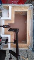 Schallwand und BB Gehäuse sind aus 15mm Verlegeplatten, z.T. aufgedoppelt. Den Deckel habe ich aus leichtem 12mm Sperrholz hergestellt.
