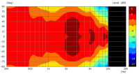 Interessant ist übrigens, wie wenig der Lautsprecher vertikal bündelt. B&M hatte ja auch größere Lautsprecher mit paarweisem Aufbau der Mitteltöner gebaut. Da dürfte das völlig anders aussehen. Ein schönes Beispiel, wie wenig es eine klare Linie bei vielen Herstellern bezüglich des Abstrahlverhaltens gibt (bzw. gab).