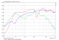 Die Abweichungen zu den Herstellerangaben sind nicht ganz unerheblich. Mal sehen, was die Simulation mit den selbst ermittelten Parametern so bringt (bisher hat das eigentlich immer ganz gut gepasst, wenn ich dann das darauf basierende Gehäuse nachgemessen habe).