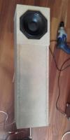 Allerdings bin ich bei einem FS von 74 Hz und einem Qts von 0,36 mit dem Gehäuse länger schwanger gegangen. Eine BR-Box wäre recht kompakt, aber irgendwo um 75 Hz wäre Schluss. Gut, dass es das Programm „Transmission Line“ von „Leonard Audio“ gibt! Spielen damit macht immer Spaß und irgendwann waren auch die B&Cs wieder mal dran. Eine klassische TML wie bei den ChlangFun25V ging wegen des niedrigen Qts-Wertes nicht wirklich gut. Bis ich auf die Idee kam, mal eher in Richtung Horn zu marschieren und eine sich erweiternde TML simuliert habe. Die streckt sich über knapp 2 m beginnend bei 0 auf einen Querschnitt vom Doppelten der Membranfläche am Ende und lässt sich prima in ein ca. 1 m hohes Gehäuse falten. Auslass zur Bassunterstützung wie immer bei mir am Boden und eine leichte Überhöhung eingebaut, die bei der nötigen ordentlichen Bedämpfung als Puffer sinnvoll ist und mit dieser verschwinden sollte.