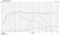 Die Spule vor dem Sub ist nett, aber aus deiner Trennung wird schon mal nix, weil sich der Pegel des Sub am 2ten BR-Höcker stört (bäumt sich auf), und aber mindestens aufgrund der (wsl sehr hohen) Schwingspuleninduktivität gar nicht ausreichend wirken kann.(Alternativ hast du das Volumen viiiiiel zu groß gewählt, dann ist das Verhalten ähnlich, Variante 1 ist mir aber plausibler im Moment). Grundsätzlich ist die Spule viel zu klein für die erhoffte Trennung, aber wsl hast du die so ausgewählt, weil bei einem größeren Wert der Buckel noch viel größer geworden wäre--->Einebnung des 2ten Höckers mittels Saugkreis erforderlich!!)