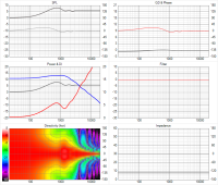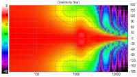 - Bei 2k Hz ist ein relativ kleiner Peak nach oben, aber da liegt irgendwo auch die Trennfrequenz. D.h. da spielen TMT und Hochtöner beide mit und der TMT zeigt dort ein Minimum, das dann das Maximum des Hochtöners teilweise kompensiert. Das sollte insgesamt kein Problem sein. [Edit:] Ein Peak durch Diffraktionen bedeutet ja stärkere oder weniger starke Bündelung. Wenn ich daher einen Peak im Frequenzgang des HT durch einen Peak des TMT kompensiere ist die gesamte Bündelung wieder wieder so wie bei anderen Frequenzen, sodass der Frequenzgang auf Achse wieder eben wird obwohl man auf allen Frequenzen gesamt die gleiche Energie abstrahlt. Damit bleibt die Lautstärke von Reflektionen unberührt. Bei einer Kompensation durch ein DSP muss ich die gesamte abgestrahlte Energie verändert werden und das beeinflusst dann auch Reflektionen im Raum.