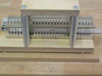 Bei dieser Vorrichtung musste ich noch ein paar 10tel mm Klebeband unter die seitlichen Begrenzungsplatten legen, damit die Teilung exakt stimmt.