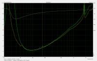 In grün der Impedanzverlauf des RSS390HF ( 3 Kurzschlussringe) und im Vergleich dazu gelb der Verlauf des OmnesAudio MW 8W (gehe mal davon aus, ohne Kurzschlussringe):