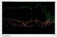 Impedanzgang: Aus dem Impedanzgang kann man einige tolle Sachen ablesen. Mit dem richtigen Mess- bzw. Analyseprogramm lassen die sich sogar ziemlich intelligent darstellen. Man kann (durch Vergleiche) feststellen, ob ein Chassis (besonders TT), eine zwei- oder vierlagige Schwingspule haben, wobei ich persönlich, außer bei Subwoofern, zweilagig vorziehe. Es läst sich z. B. erkennen, ob ein Chassis in irgendeiner Form demoduliert ist, also Kurzschlussringe hat (Notiz für mich: Beispiele bereit stellen). Es sind Resonanzen erkennbar, die aus den verschiedensten Gründen im Frequenzgang nicht auffallen. Also ein tolles Werkzeug - nur nicht um die TSP zu messen. Dafür ist es scheiße.