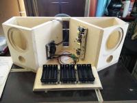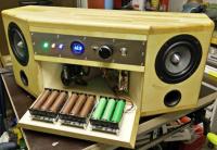 Wondom-Board (JAB2-50) links, Netzteil rechts und vorne in der Klappe die Akku-Module (das Board hat Batteriemanagement und Ladeelektronik für die Module bereits integriert).