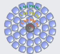 Habe ein Paar der 130mm Koax Chassis von KEF (aus der Q100) da, und habe mir überlegt, was man daraus machen könnte. Wie wäre es mit einer großen koaxialen Anordnung mit vielen kleinen Chassis, die ringförmig um den KEF-Koax angeordnet sind?