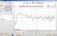 Für die Gesammtmessung mit den Bässen, musste ich die Trennfrequenz höher legen, um den schallwandbedingten Einbruch bei 500 Hz zu minimieren und den Schalldruckabfall zu tieferen Frequenzen auszugleichen. Bass 400Hz BW12dB, Pionier 580Hz BW24dB (das geht bestimmt noch besser, aber erstmal auf die Schnelle reicht das)