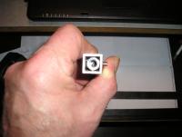 In die Aluminium- Quadratrohre werden die M6 Gewindemuffen je an den Enden eingeschoben .......... die passen da fast perfekt rein. Zum fixieren werden die Alurohre mit den eingeschobenen Gewindemuffen bei 20mm von jedem Ende des Qadratrohres quer durchbohrt (3,3mm) und ein M4 Gewinde eingeschnitten.