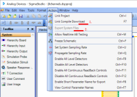 1. Dazu musst du erstmal auf oben im Menü auf "Action" und dort dann "Link Compile Download". Es wird vermutlich eine längere Fehlermeldung zum Thema USB kommen, die kann man einfach ignorieren.