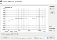 Im Anhang seht ihr meine Mikro-Korrekturdatei und die gleiche aus einer .pir-Datei geladene Messung, einmal mit und einmal ohne Korrektur. Irgendwie werde ich das Gefühl nicht los, das hier die Korrektur doppelt eingeht, wenn ich diese beim Laden bzw. vor dem Darstellen der Datei eingeschaltet lasse.