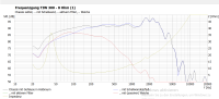 Schwarz der TIW 300 im Halbraum gemessen. Blau im 32cm breiten Gehäuse simuliert: Man sieht schön den Tieftonabfall beim Übergang zum Kugelstrahler und oberhalb von 300-400Hz eine weitere Zunahme des Schalldrucks. In Summe sind das (konservativer Vergleich 100Hz und 500Hz) die oben erwähnten +4dB aus der Praxis.