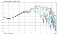 Dann kommen starke Bewegungen der Membran mit der Folge dass sich das Volumen hinter der Dustcap ständig verändert.