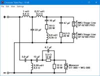 Die 18dB Weiche ist genau nach Plan bestückt, mit Sperrkreis. Ich hatte mich noch umentschieden und nicht die größeren Gehäuse mit dem Zusatzvolumen gebaut.