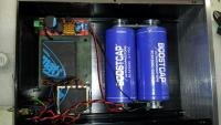 November 2015 setzten wir die Ultrakondensatoren mit zusätzlichem Choke-Netzteil ein. Die Kapazität wurde geringer ("nur" noch 350F) dafür wurde das Handling mit Balancern und leistungsstarken LT1083 Reglern einfacher. Ein wenig später kam John Swenson mit seinem Ultrakondensator basierten Netzteil Ultracap LPS-1 raus. Er hatte das Konzept besser zu Ende gedacht und setzte kleine Ultracaps mit wenigen Farad ein und schaltete 2 Bänke wechselseitig ein und aus.