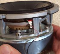 Das Gehäuse ist eine Papprolle mit Holzdeckel und minimalem Volumen. Viel brauchts nicht, da der Mitteltöner eh nicht tief kommt. Resonanzfrequenz wird immer über eine Oktave unter des Arbeitsbereichs liegen.