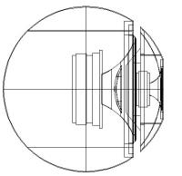 [ATTACH=CONFIG]62914[/ATTACH]Bestückt wird die Kugel mit je einem Transfair Audio PAR 20 (Bass – ca. 400 Hz) und einem Vifa 9 BN 119/8 (Mittel- u. Hochton ab ca. 400 Hz), getrennt über DSP-Weiche. Der Schlitz zwischen Bass und MH-Töner ist in mehrfacher Hinsicht zentral für das Konzept. Denn