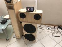 Verstärker ist wieder derselbe China Kracher. Chassis zwei Visatöner FR58 mit einem FRS8 als Passivmembran. Dazu gesellt sich noch ein Sperrkreis, der den Frequenzgang schön glattbügelt. Natürlich ist das Ding von der Lautstärker limitiert, liefert aber bis dahin einen guten Klang.