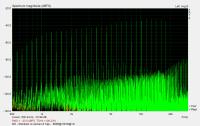 Die Grenzfrequenz des HP liegt mit 3.3kHz also satt in dem vom Test abgedeckten Frequenzbereich. Der Vergleich der Multiton-Verzerrungen des Standard-Cap (grün) mit dem "high-end" Alumen-Z-Cap (orange) zeigt praktisch keine Unterschiede - gemessen am Hochtöner.