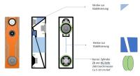 Hier kamen mir noch Ideen zur Detailverbesserung. Weitere Streben. Plus ein KG Rohr was die ersten Zentimeter der Membrane umfassen sollte, um so den Tieftöner bei starkem Hub eine Rotations-Symmetrische Belastung zu gewähren, und damit die Taumelbewegungen zu reduzieren. Leider fiel auch das flach - kein Platz. Der Fußabdruck sollte auf 30x30cm beschränkt werden, und das Rohr käme zu nahe an die Schrägwand. Auch schade. Vielleicht ein anderes Mal.