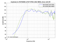 - RCF ND850: moderner 1,4"-Treiber mit Titanmembran und Mylaraufhängung und brauchbarer Auslenkung. Gut Belastbarkeit (leidensfähig) und damit tiefe Ankoppelbarkeit. Störungen im HT erst ab 10 kHz (akzeptabel)-das ist der Grund warum ich keinen Treiber mit 4" Membran/Schwingspule genommen habe. Da kämen die Störungen schon deutlich unter 10 kHz.