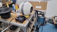 Verstärker ist was auf esp32-Wrovermodul PCM5102 und TPA3118 mit eine ESPSqueezlite oder einer Snapcast-Client Variante. Im 1. Versuch als Einbauversion..Jetzt werde ich das aber separt in eigenen Gehäuse in den Fuß für die Kugel packen..auf dem Bild ist noch die Einbauvariante zu sehen..