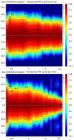 Doch auch hier ist bei 3-4 kHz das Polardiagramm zu breit (die Linien für 5 und 6,3 kHz zeigen bereits die anschließende Bündelung). Dieser „Fehler“ ist gut im folgenden Sonogramm zu sehen, das meine beiden DT25-N im Zusammenspiel mit einem Monacor SPH-176 beobachtet: