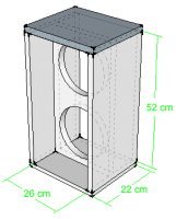 Sie heißen Visaton W 250 und sind parallel geschaltet. Mancher würde sagen: billig und willig. Für unsere Zwecke aber besser als gedacht. Die Kiste ist ein sogenannter H-frame: