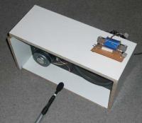Den Hochton-Dipol aus zwei stark beschnittenen Dayton ND20FA-6 Neodym-Kalotten montiere ich auf einem Mini-Schlitten direkt über dem Mitteltöner. Der Gedanke dabei ist erstens, dass eine halbe Wellenlänge bei 2 kHz gleich 8,5 cm ist. Das entspricht praktisch dem Abstand beider Chassiscentren bei dieser Montage. Zweitens – wir sind schließlich im Swinger Club – will ich verschiedene Positionen ausprobieren. Zum Beispiel das Hochtönerpaket auf der Längsachse verschieben, um dann die "zeitrichtigste" Stellung zu finden. Versuche an einem anderen Dipol hatten ergeben, dass dazu der Hochton VOR den Mitteltöner geschoben werden musste.