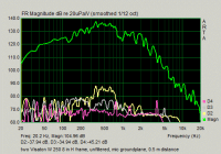 Ansonsten sieht man die Dipolspitze bei 2kHz (auf der dummerweise noch eine kleine Resonanz steckt) sowie den stetigen Abfall darunter.