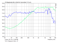 Die Spitze bei 5,5 kHz habe ich in allen Messungen (ich gehe von einer Störung des Mikrofonständers aus!), und der Abfall über 15 kHz liegt wohl an einer leicht falschen Mikrofon-Kalibrirungsdatei.
