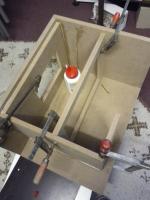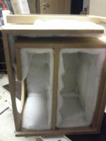 Bist du dir sicher, dass die Abstimmfrequenz bei 40 Hz liegt? Dafür sieht mir der Port doch deutlich zu lang aus. Wenn ich das mal mit nach den Fotos geschätzten Maßen nachrechne, komme ich der eher auf 20 Hz. Zudem würde ich die Watte im Port auch nochmal überdenken...