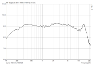 Eine interessante Beobachtung: dieser Treiber ist so klein, dass bereits die Öffnung in einer 19 mm dicken Spanplatte als Helmholtzresonantor im Nutzband fungiert und eine schöne Resonanz herbeizaubert. Daher habe ich diesen Treiber (und andere kleine) extra in einer dünnen Sperrholzplatte gemessen. Damit war von der Resonanz nichts mehr zu sehen.