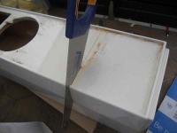 Daher bin ich zu dem Schluss gekommen die Boxen in mehrere Teile zu schneiden und neu zusammenzufügen. Vorweg gesagt, ich habe damit schon begonnen, meine geliebten Lautsprecher zu zerlegen. Es ist jetzt auch nicht mehr umkehrbar, ich habe die Lautsprecher mit dem Fuchsschwanz von oben nach unten und unten quer zerteilt. Da muss ich jetzt durch und dazu brauche ich wohl etwas fachliche Unterstützung.