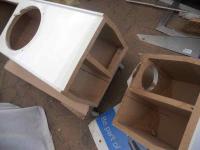 nun zu meinem Vorhaben. Die Gehäusewände sind bis auf die Schallwand, zusammengefügt. Der Boden soll als abnehmbarer Sockel ausgeführt werden, die Frequenzweiche wird dort zugängig bleiben. Die Schallwand wird in Birke MPX (Multiplex) ausgeführt und soll die perlmutt-weiß lackierten Gehäuse mehr an die Möbel (Birke) farblich anpassen. Die Schallwand soll abschraubbar sein, um möglichst flexibel auch mal andere Lautsprecher einbauen zu können.