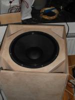 Wie gesagt, der Sub ist noch nicht mit dem Gehäuse verheiratet... Es wird ein the box 15LB100/8-W im Jobst JB115 Sub Gehäuse (90 Liter, 40Hz Abstimmung iirc, vier Eckports. Wenn man zwei davon verschließt bekommt man übrigens eine EBS6 Abstimmung.)
