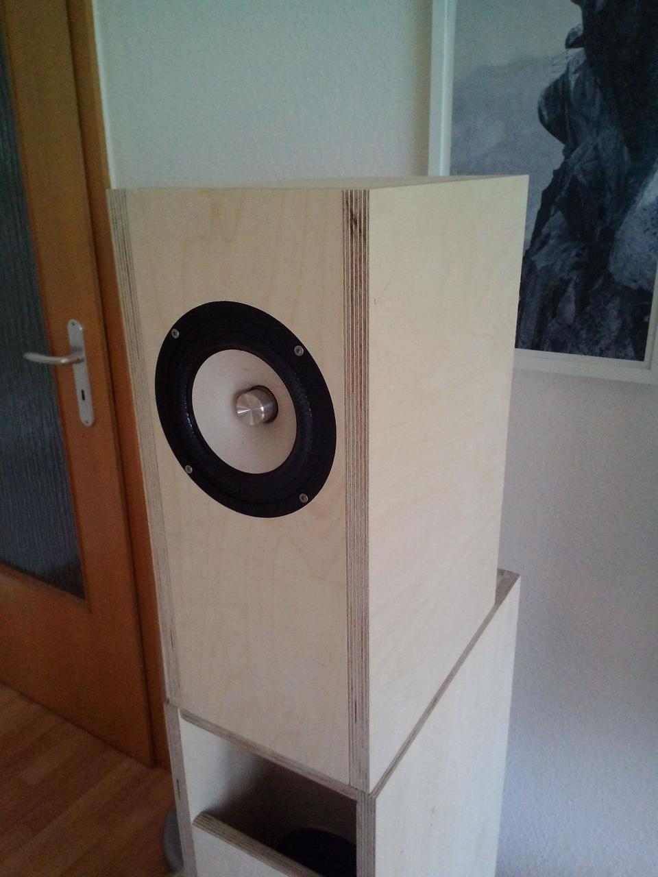 Hab ich schon gesagt, wie geil ich Lamellos finde? Hab mal alles zusammengesteckt und eine Stellprobe gemacht. Die Bassreflex Idee hab ich mal vom Sepp geklaut, sieht super aus. Danke!