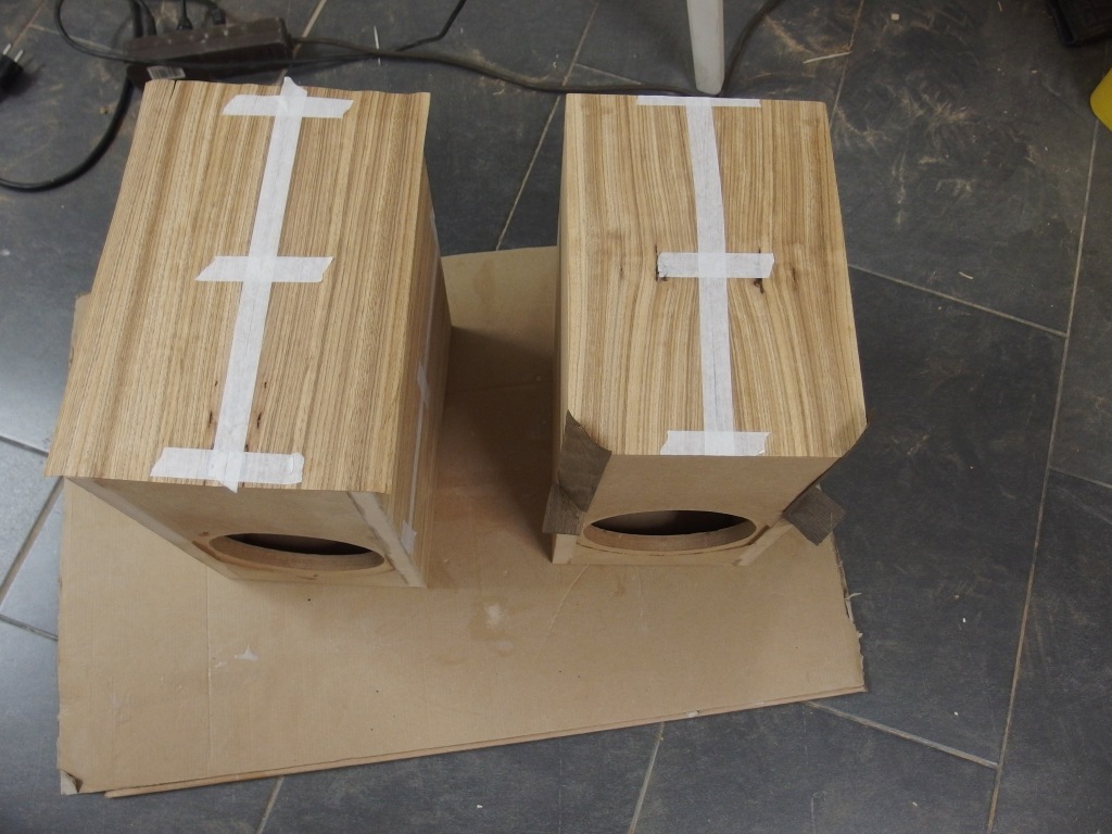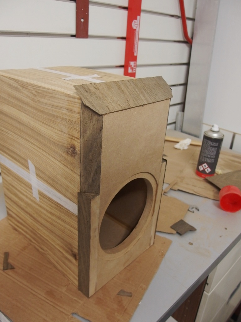 Beim Gehäusebau, hab ich mir der Schallwand angefangen, da ich den LS mit räucher Eukalyptus furnieren wollte und das Zeug wirklich spröde und widerspenstig ist! (mir ist klar, dass man die Schallwand als Letztes Furnieren sollte, aber ich war mir nicht sicher ob ich an der Schallwand scheitern würde…)
