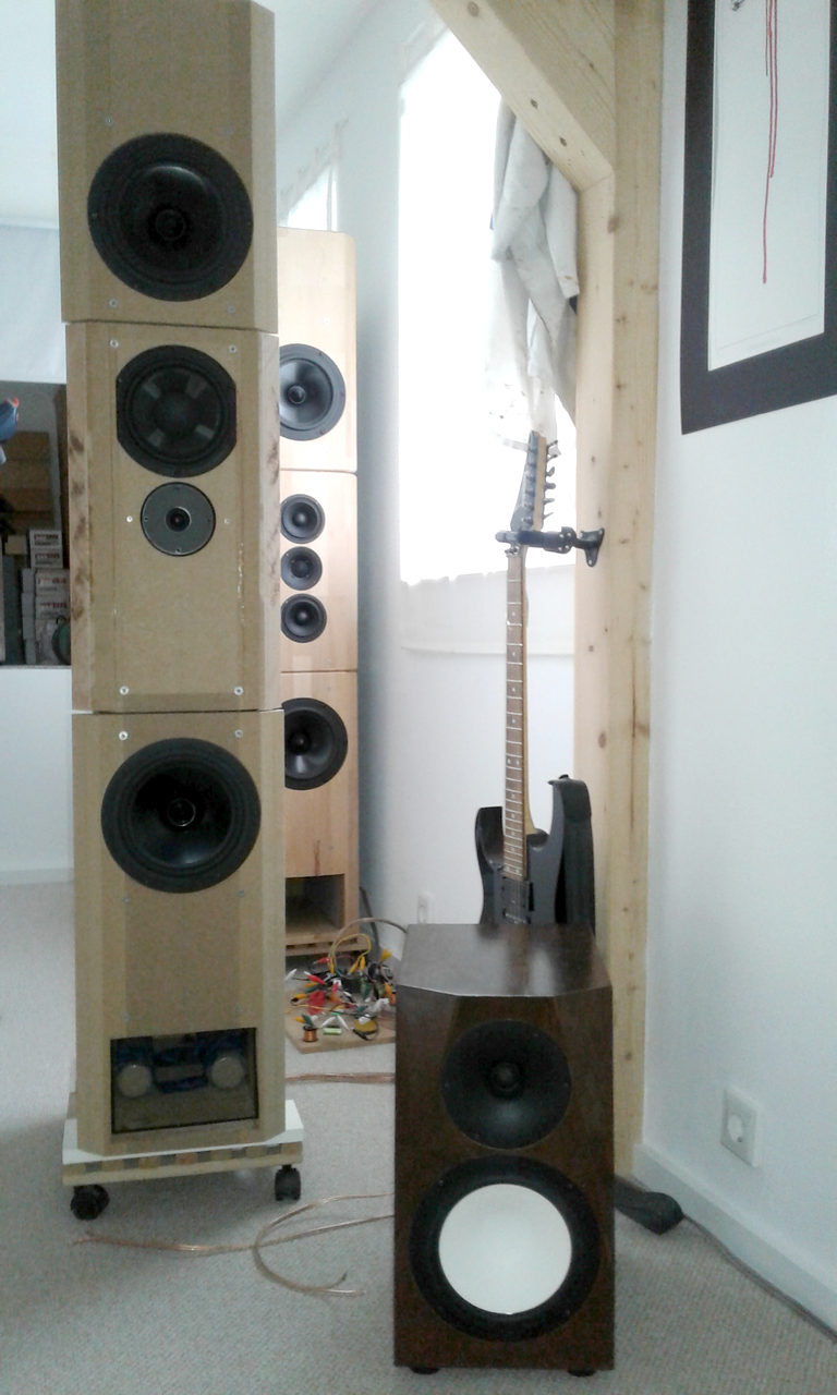 Die Geschichte nahm mit "machs wie alle" eigentlich seinen Anfang. Daher der Ansatz 4'' (5'' habe ich auch getestet) + 1'' (Seas 27TBCD, 27TAFC, 27TFF) oder 0,75'' (Scan Speak 851100) HT in MT-HT oder MT-HT-MT Anordnung mit möglichst niedriger Trennung.