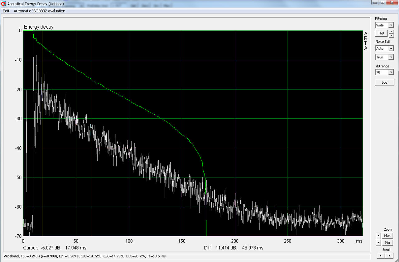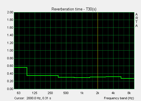 ... und damit alles transparent ist, hier noch die Auswertung der Nachhallzeit am Hörplatz durch Arta: