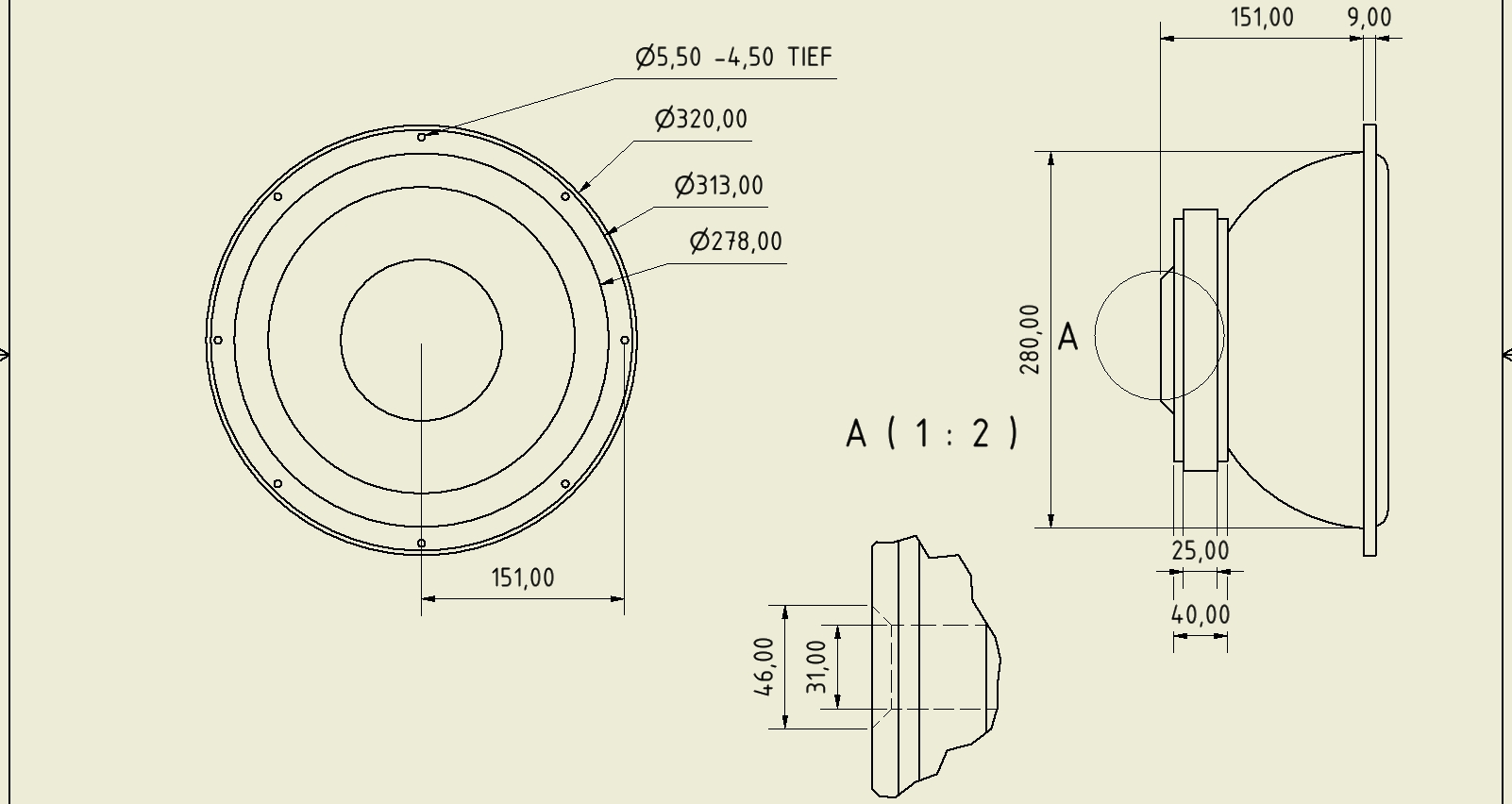 Da ich bei BP kein Maßblatt finde, frage ich Dich mal nach der Einbautiefe des Chassis, also von der Korbringauflage bis zur Polplatte des Magneten