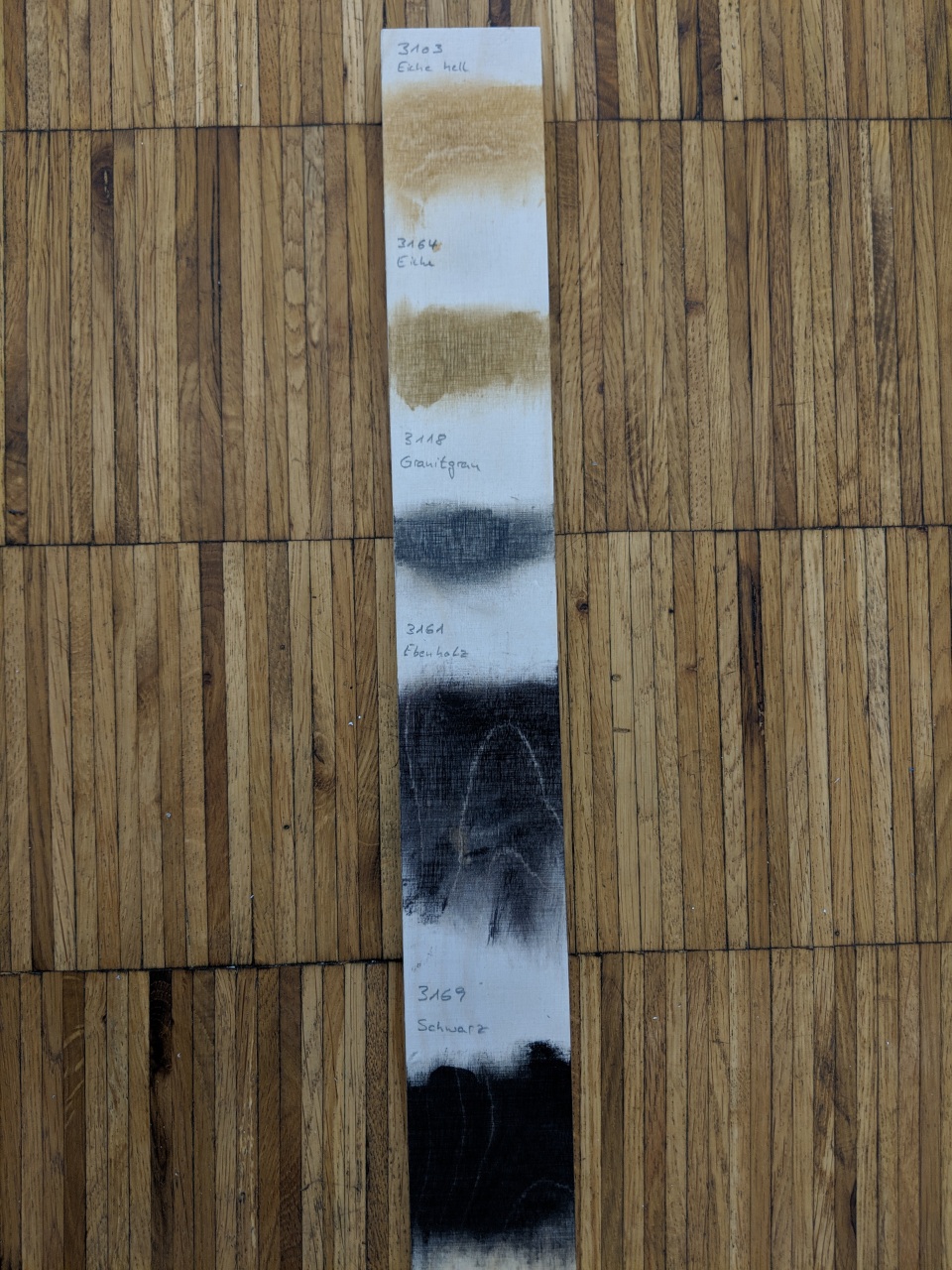 ich bin ein bisschen weitergekommen. Wie bereits angekündigt hab ich ein paar Versuche bezüglich des Oberflächenfinish hinter mich gebracht. Da ich den Holz-Look generell mag habe ich mich dazu entschieden die Gehäuse nur mit Deko Wachs zu behandeln. Hierzu habe ich mir bei Osmo ein paar Muster bestellt und auf einem Reststück Birke-MPX ausprobiert. Das Ergebnis der Bemühungen seht ihr hier: