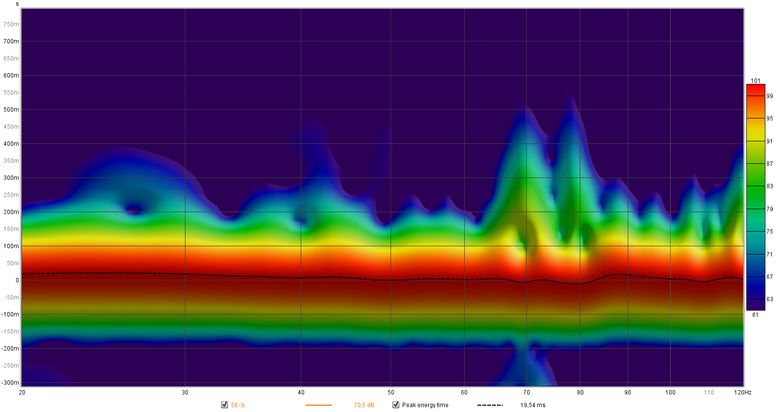 Daher hier das pro Frequenz auf die höchste Amplitude normierte Abklingspektrum (gab es damals in REW noch nicht). Das lässt keine Zweifel mehr.