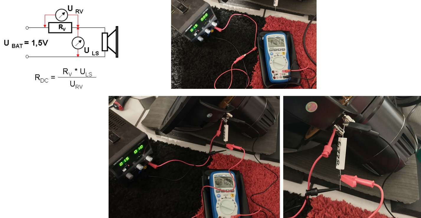 3.1.5 Gleichstromwiderstand der Spule Re (= Rdc): Wie in Handbuch beschrieben per Gleichstrom über Referenzwiderstand gemessen.