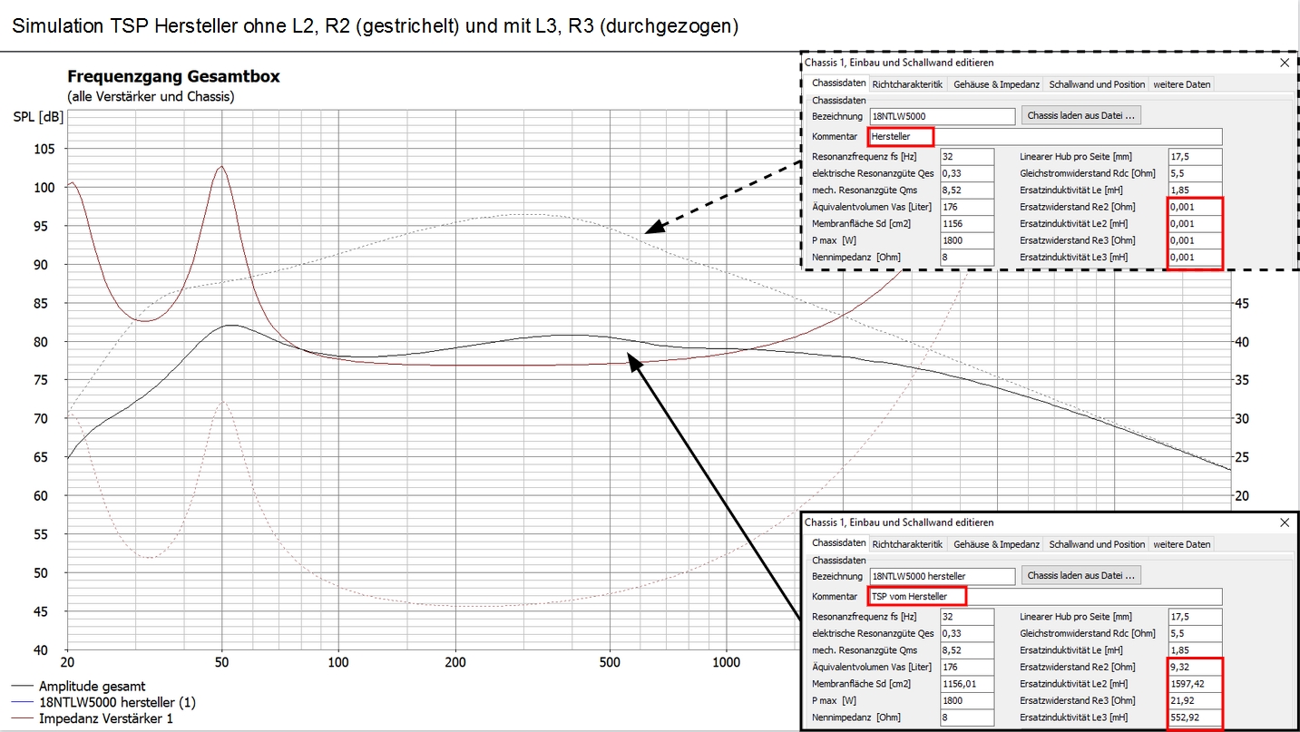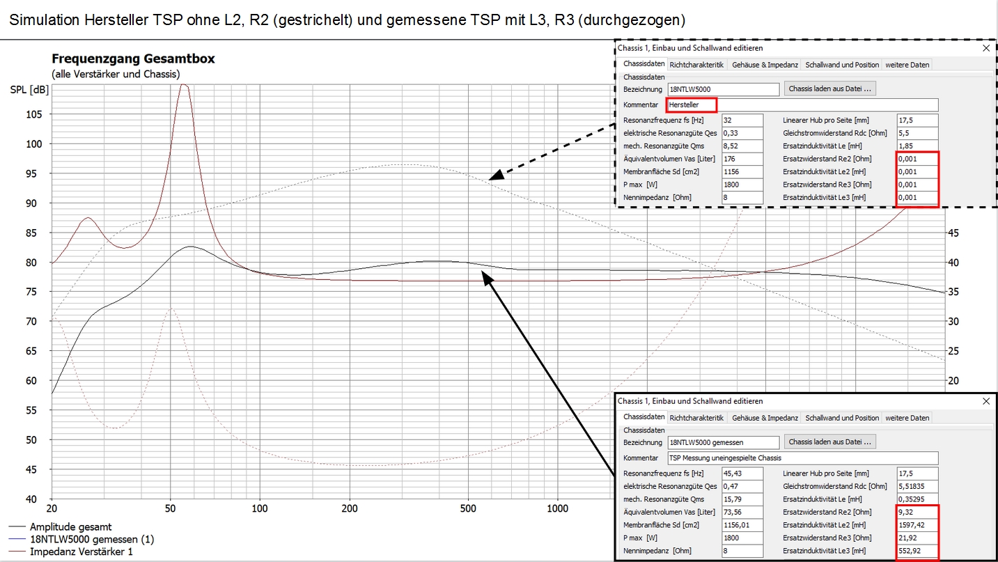Das Thema Le habe ich immer noch nicht verstanden. Wenn ich die gemessenen TSP inklusive L2/R2 und L3/R3 in BoxSim eingebe, kommt nur Käse bei raus. Kann man die dann einfach ignorieren? Weil eigentlich ist das ja Teil vom Ergebnis (Estimated lossy inductor model: Le+L2||R2+L3||R3).