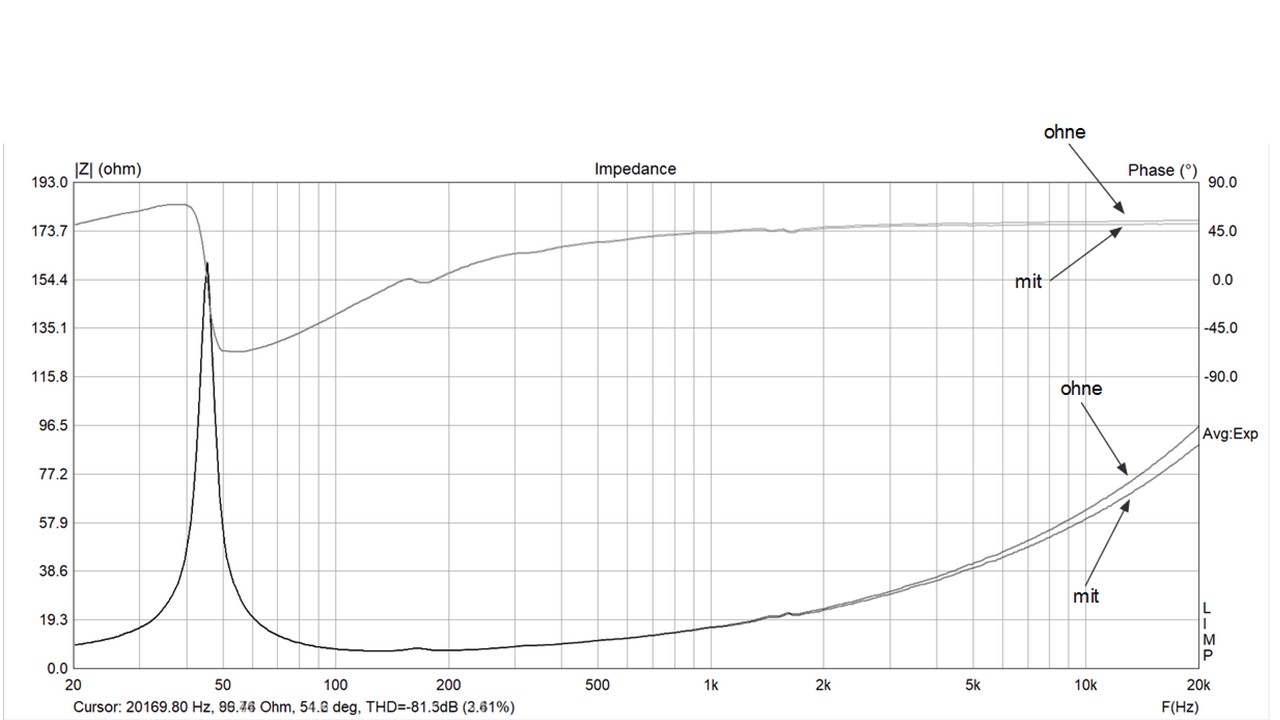 Die Kurven ändern sich auf den ersten Blick, je nachdem wie genau dieser Blick ist, auch nicht. Im Impedanzverlauf verschiebt sich hauptsächlich die fs (Impedanzspitze) um ein paar Hz - rein per Auge wird das vermutlich kaum auffallen.