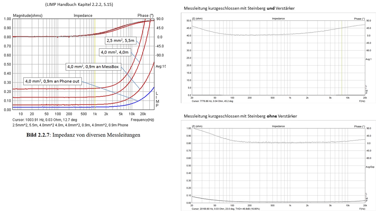 Auch die Messung mit kurzgeschlossener Leitung sieht anders aus als im Handbuch. Dort ist die Phase aufsteigend, bei mir ist die abfallend bzw. Wannenförmig. Unabhängig davon, ob ich nur das Interface oder noch einen Verstärker benutze. Habe ich vielleicht doch irgendwo einen Fehler drin?