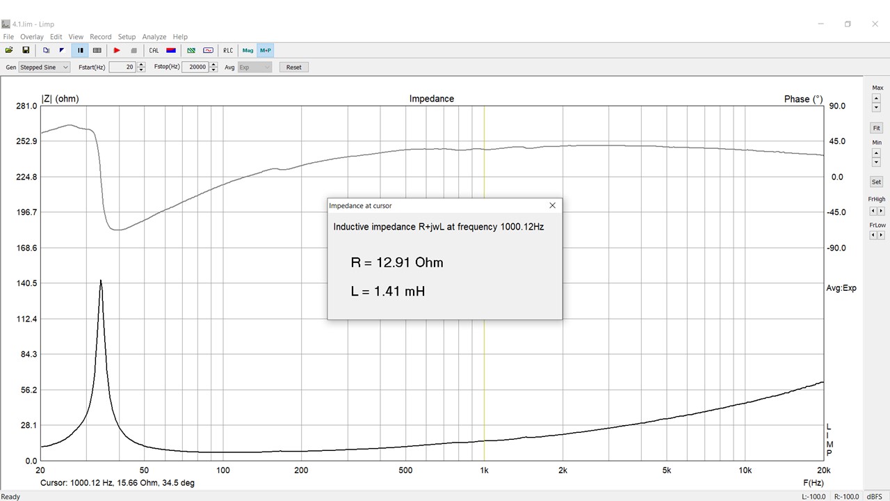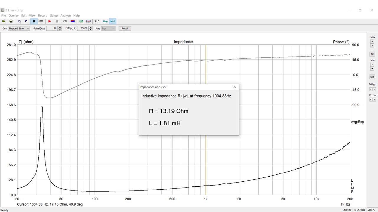 Zum Thema Le folgendes Vorgehen. Gelben Marker auf 1000Hz setzen. Dann den Button "RLC" klicken. Dann kommt ein plausibeler Le Wert raus.