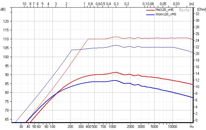 Wenn Sie die beiden HPs breitbandig hören, bevorzugen Sie sicherlich den Wom120_vMS. Wenn Sie jedoch bei 48dB/Okt filtern, um den Bereich von ~200Hz bis 3000Hz zu belassen, bietet Ihnen der Mid120_vHE mehr Details, Nuancen und Dynamik.